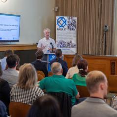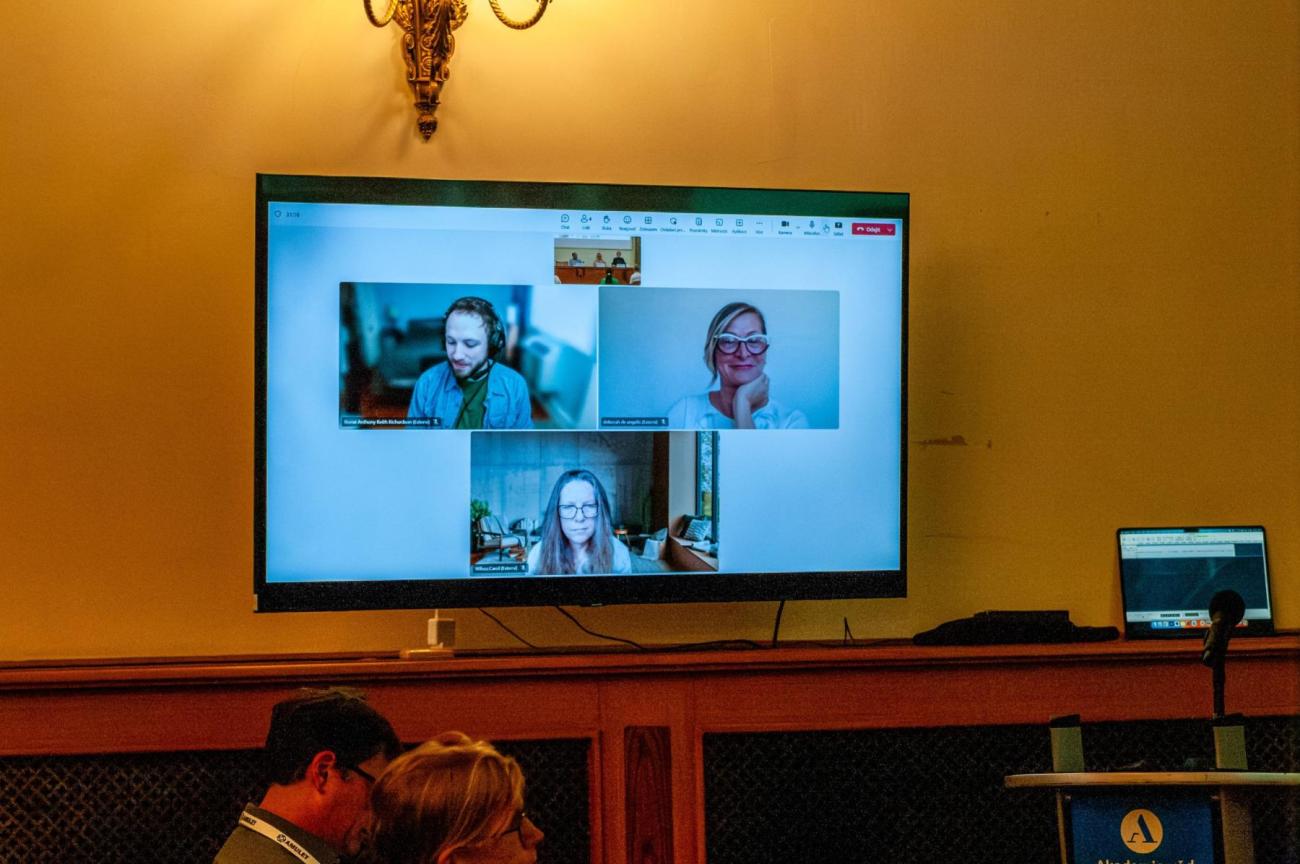 Odpolední sekce se zaměřila na propojování globálního, evropského a tuzemského rámování širších zkušeností a strategií k OS, ať už se jednalo o druhou mezinárodní panelovou diskusi, přednášku Hugha Shanahana (Royal Holloway, University of London), který hovořil o výzkumných infrastrukturách a jejich kritičnosti a zranitelnosti, nebo Terezy Stöckelové, která reflektovala OS nejen jako akademickou, ale také společenskou otázku. Na závěr nechyběly ani vize k dalšímu směřování, když Marek Cebecauer (ÚFCH JH) prezentoval úvahy na téma OS v éře robotiky a AI.